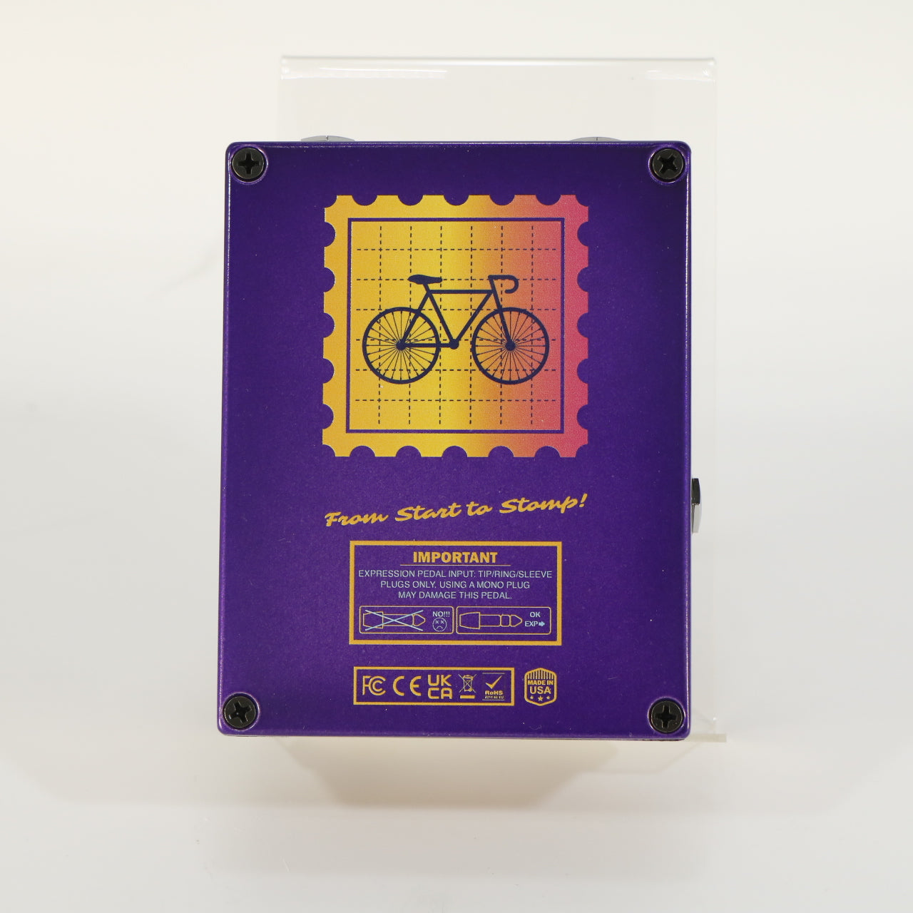 The pedal features a ¼″ expression input compatible with controlling non-envelope parameters (Shape, Mode, Depth) via an external pedal. It runs on 9 V DC (center negative) and draws approximately 60 mA while offering MOSFET-protected power circuitry compatible up to 18 V. Built in the USA with high-quality construction and an enclosure size of roughly 4.7″ × 2.6″ × 0.6″, the Macrodose suits guitar, synth, and bass applications.