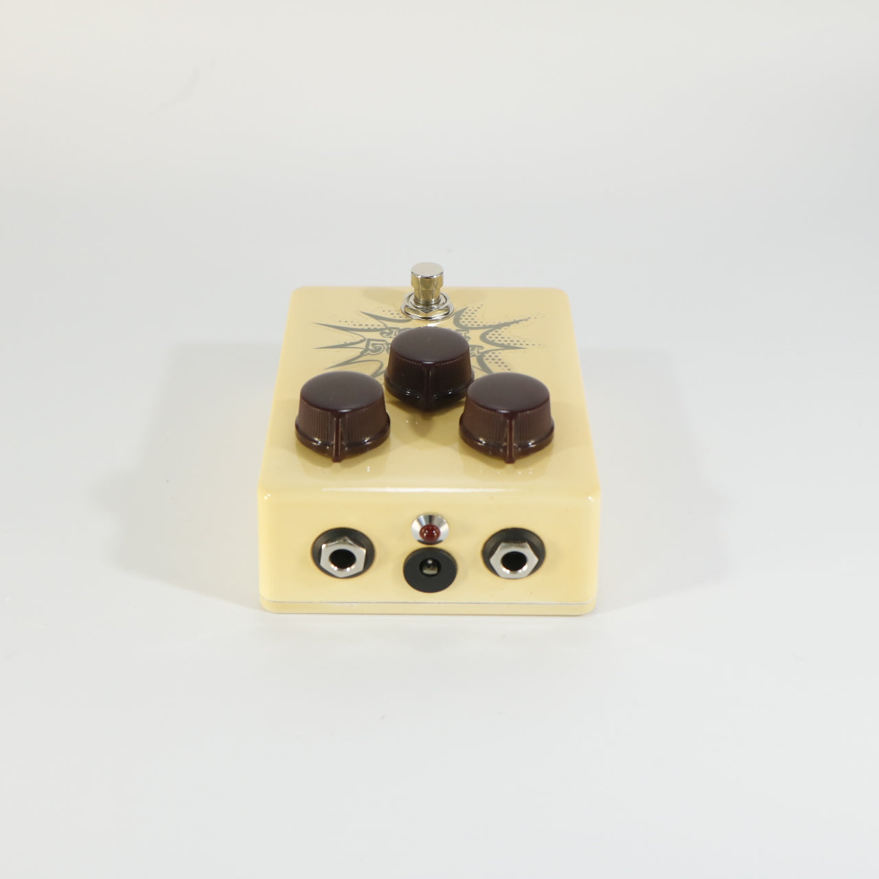 Die Schaltung orientiert sich an den klassischen Fuzz-Face-Designs und liefert ein dynamisches Klangbild mit dichter Sättigung, natürlichem Sustain und hervorragender Reaktion auf das Gitarren-Volumen – ideal für expressive Spielstile. Es sind keine internen Trimpotis vorhanden, was die Schaltung besonders puristisch hält: kein unnötiger Schnickschnack, nur echter Germanium-Fuzz mit musikalischem Charakter.