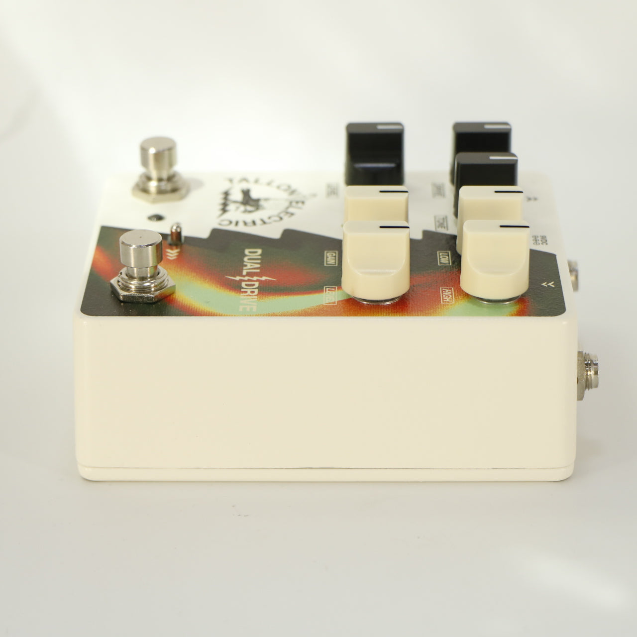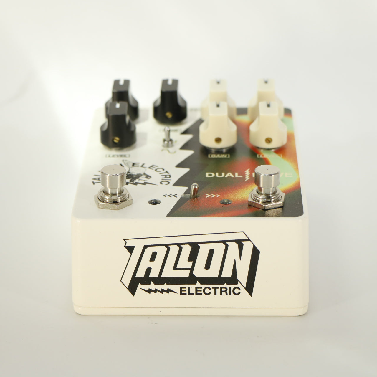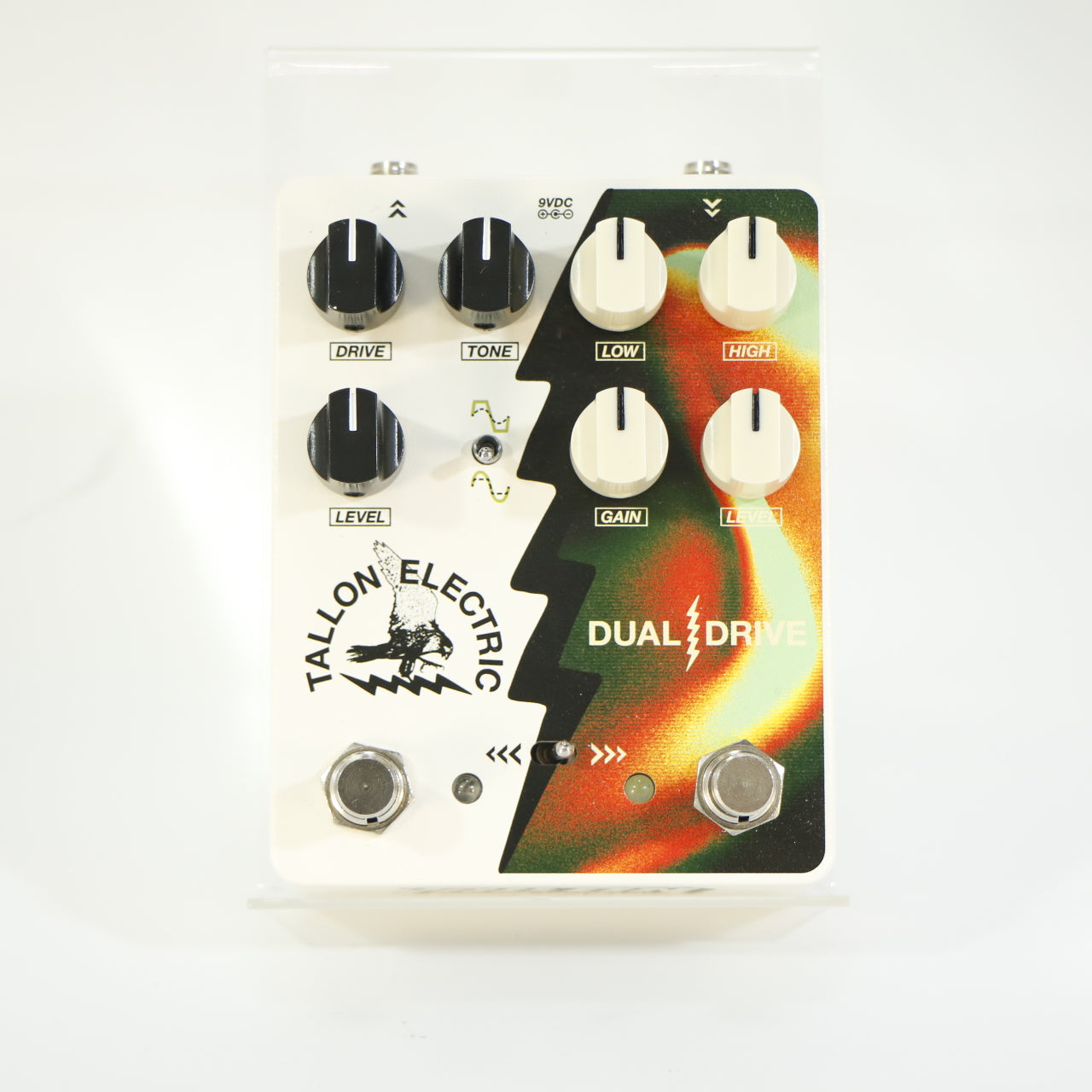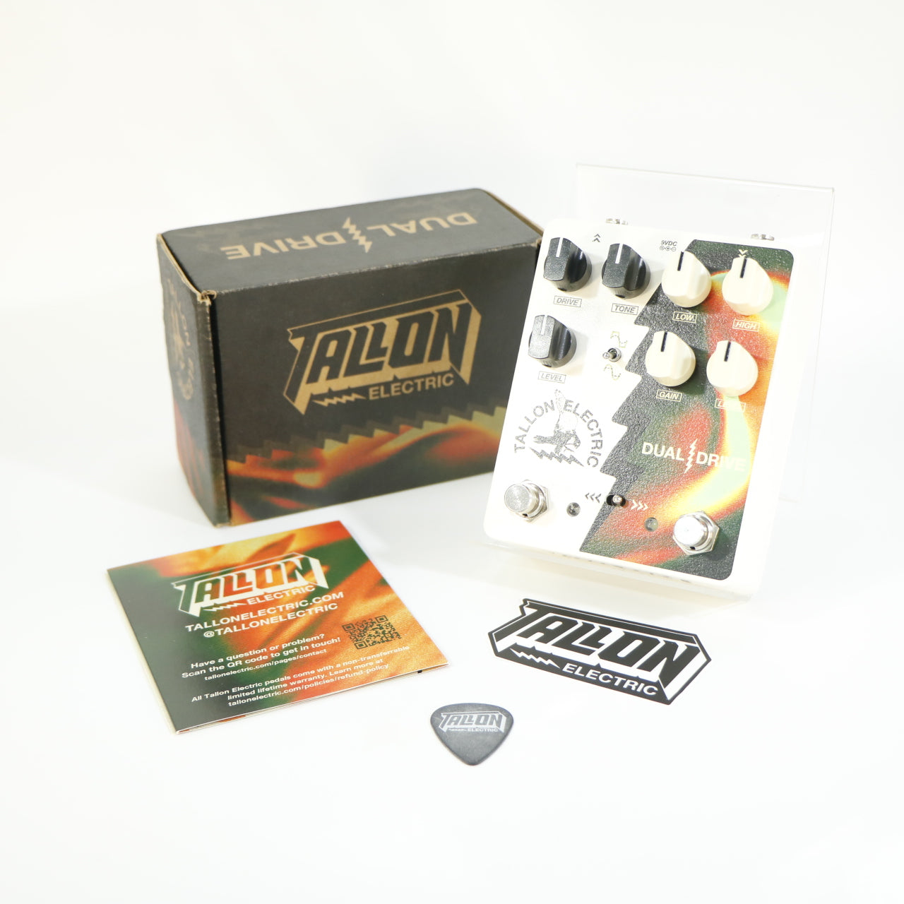 Das Tallon Electric Dual Drive ist ein Boutique‑Pedal mit zwei eigenständigen Overdrive‑Schaltungen in einem kompakten Gehäuse und bietet vielseitige Klanggestaltung. Die linke Seite orientiert sich am klassischen Blues Breaker‑Sound, mit abgeschliffener, transparenter Verzerrung, hervorragender Ansprache bei Akkorden und viel Headroom. Sie verfügt über vier Regler: Drive (Gain), Tone (Höhenfilterung), Level (Ausgangslautstärke) und einen Transparency‑Toggle für zwei unterschiedliche Klangvarianten zur Verbesserung der Akkordreinheit. Die rechte Seite bietet eine härter zupackende K‑Style‑Schaltung mit sanfter Verzerrung, ausgestattet mit einem Low- und High‑Shelf EQ, Gain und Level zur klanglichen Feinjustierung. Mit dem zentralen Order‑Toggle lässt sich die Signalreihenfolge der beiden Schaltungen umkehren und komplexe Drive‑Kombinationen realisieren. Das Pedal sitzt in einem robusten Druckgussgehäuse, nutzt Soft‑Click gepufferte Bypass‑Schaltung und benötigt eine 9 V DC Stromversorgung (zentrales Negativ), bei einem Verbrauch von etwa 28–38 mA. Batteriebetrieb ist nicht möglich. Das Dual Drive verbindet zwei hochwertige Overdrive‑Sounds in einem platzsparenden Format.