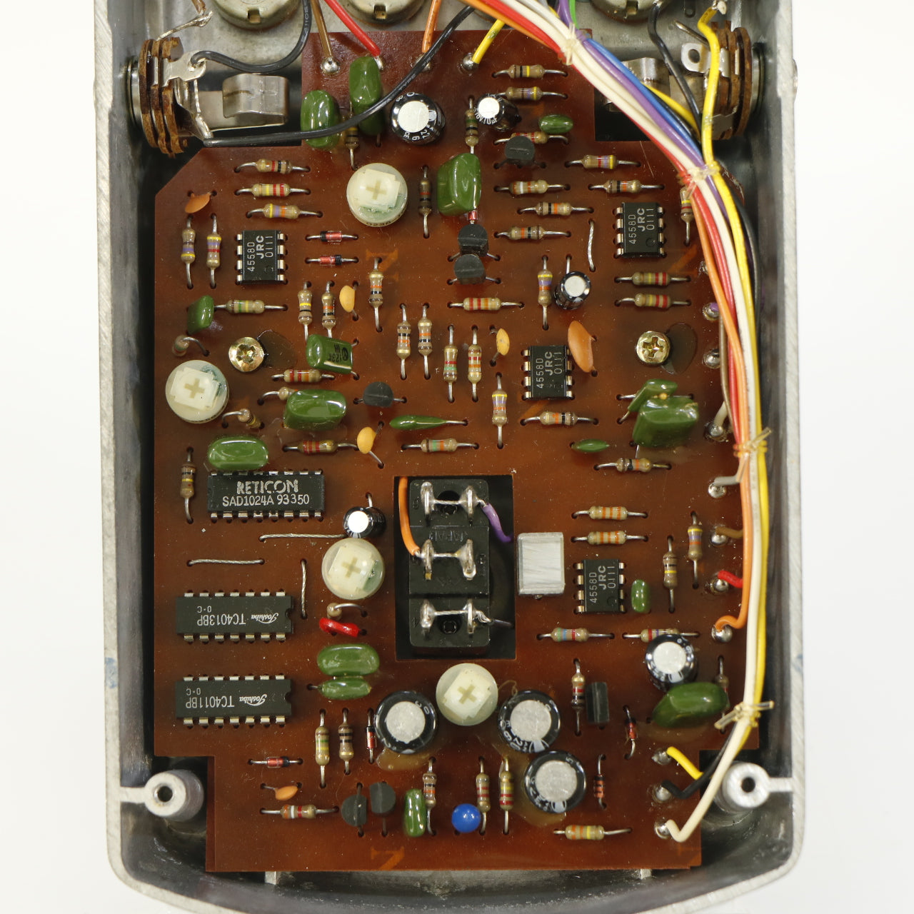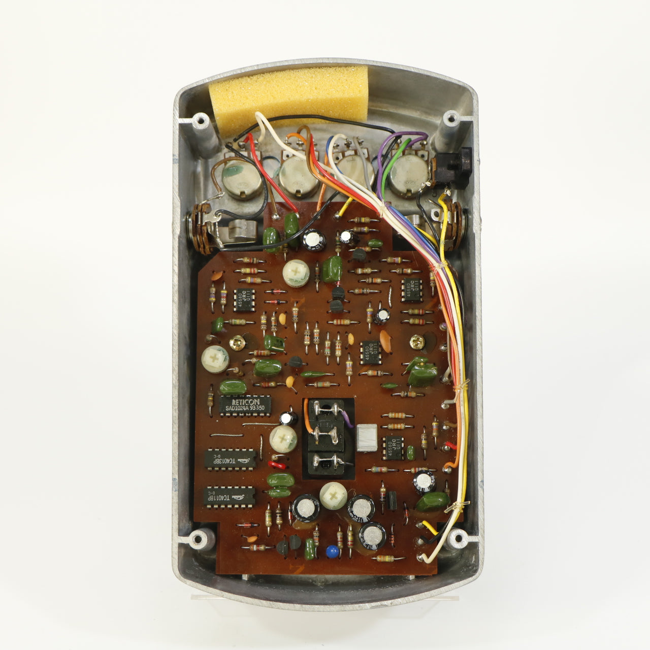 De Boss BF-1 was het allereerste flangerpedaal dat Boss uitbracht, geïntroduceerd in 1977 als onderdeel van de originele brown-label lijn. Dit vintage exemplaar (serienummer 947600) bevat de felbegeerde Reticon SAD1024 bucket brigade-chip, bekend om zijn vloeiende, warme en organische modulatieklank.
