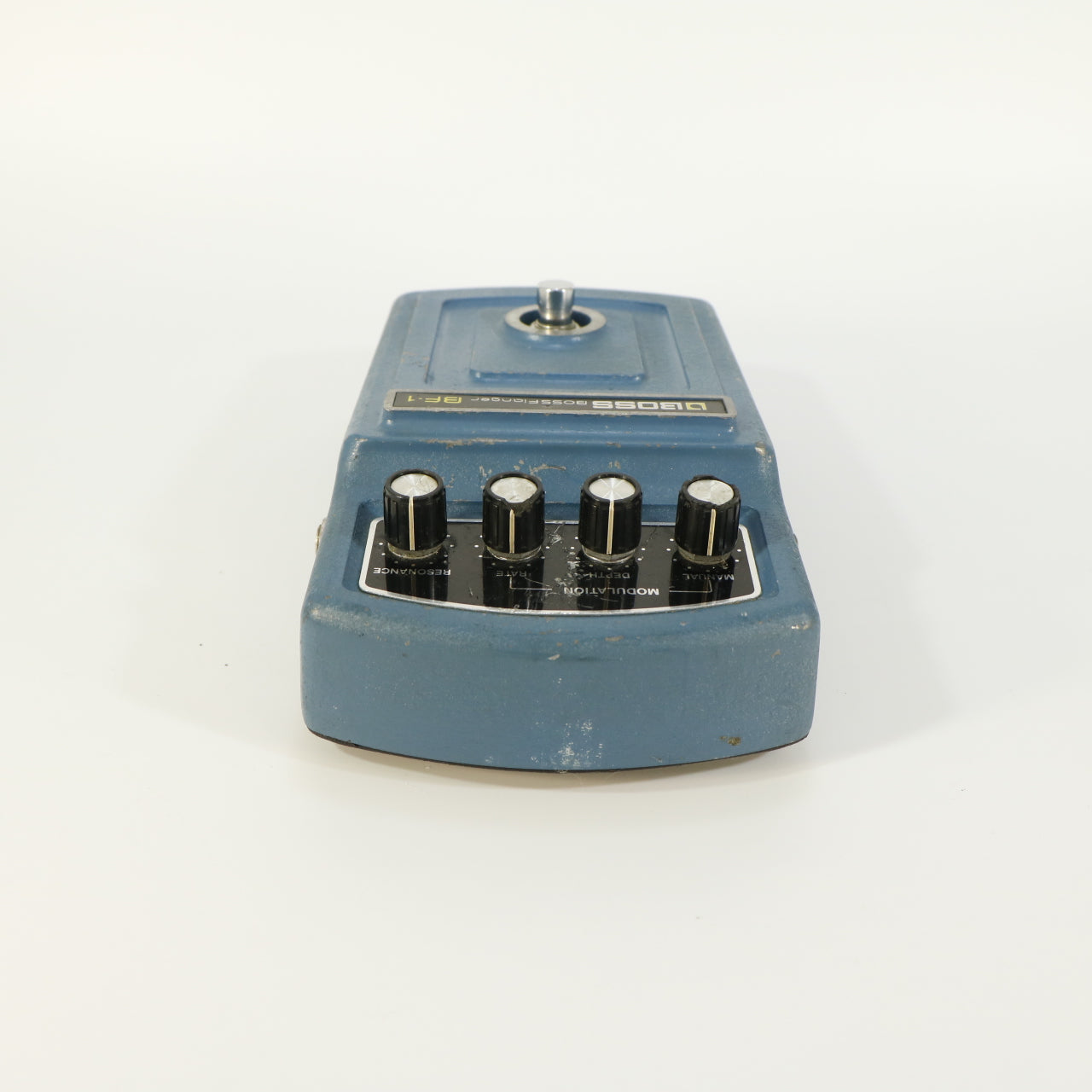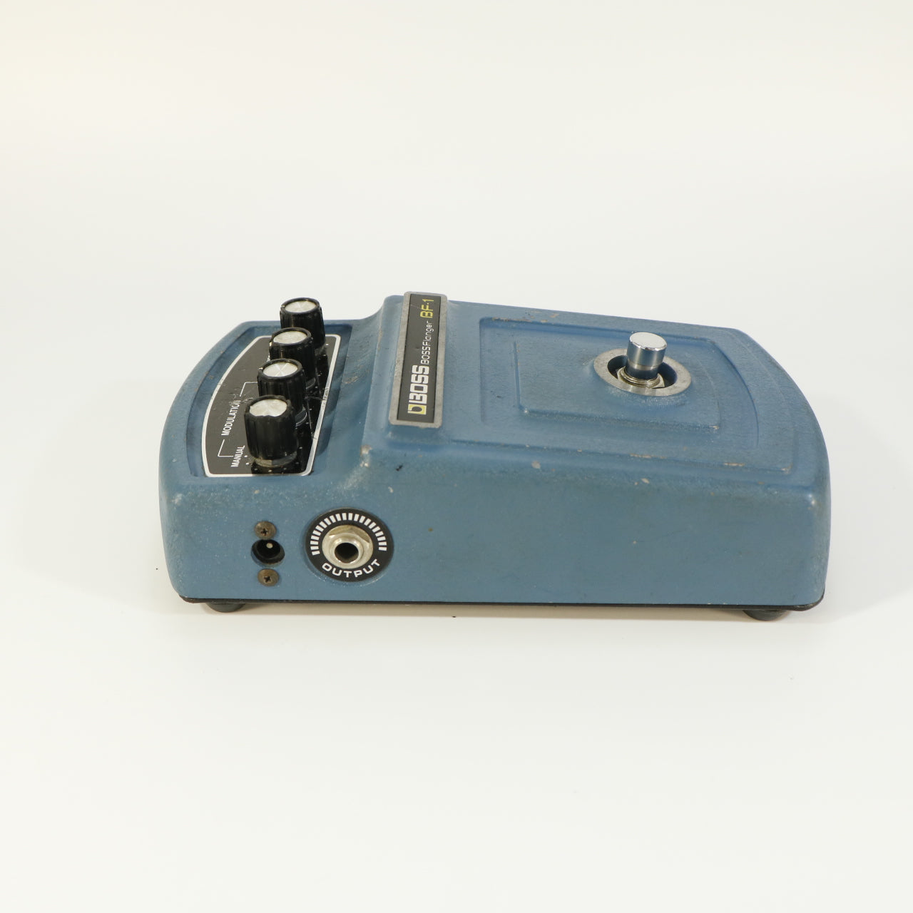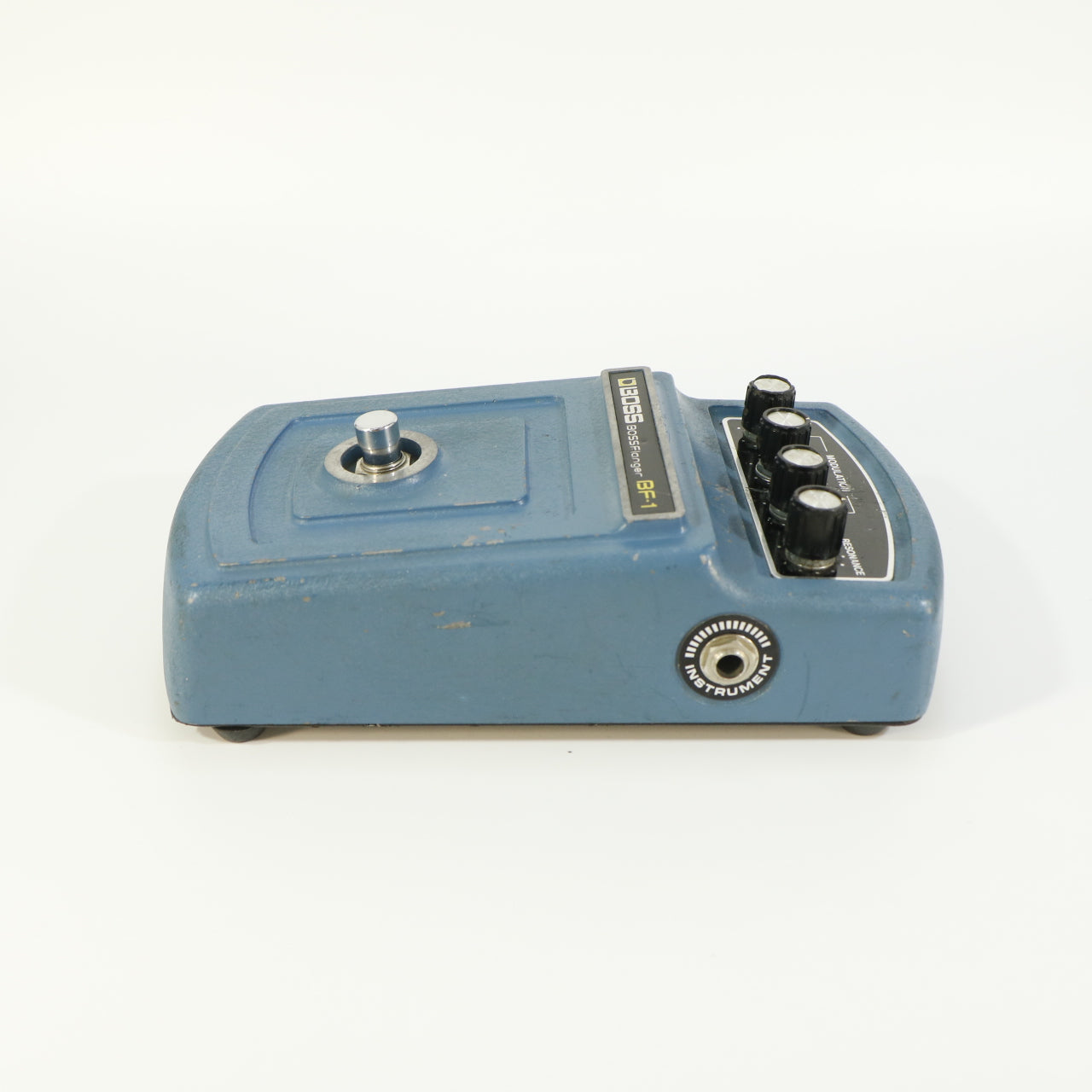 De bediening bestaat uit Manual, Depth, Rate en Resonance, waarmee je nauwkeurig de sweep, intensiteit, snelheid en feedback kunt instellen. In tegenstelling tot latere Boss-pedalen komt de BF-1 in een grotere wedge-vormige behuizing met standaard 6,3 mm jackaansluitingen.