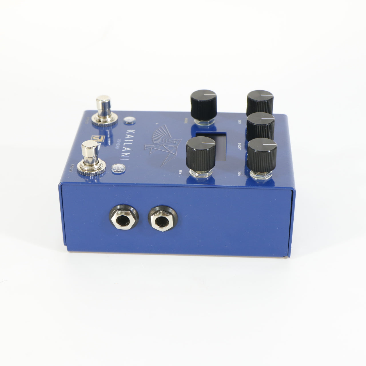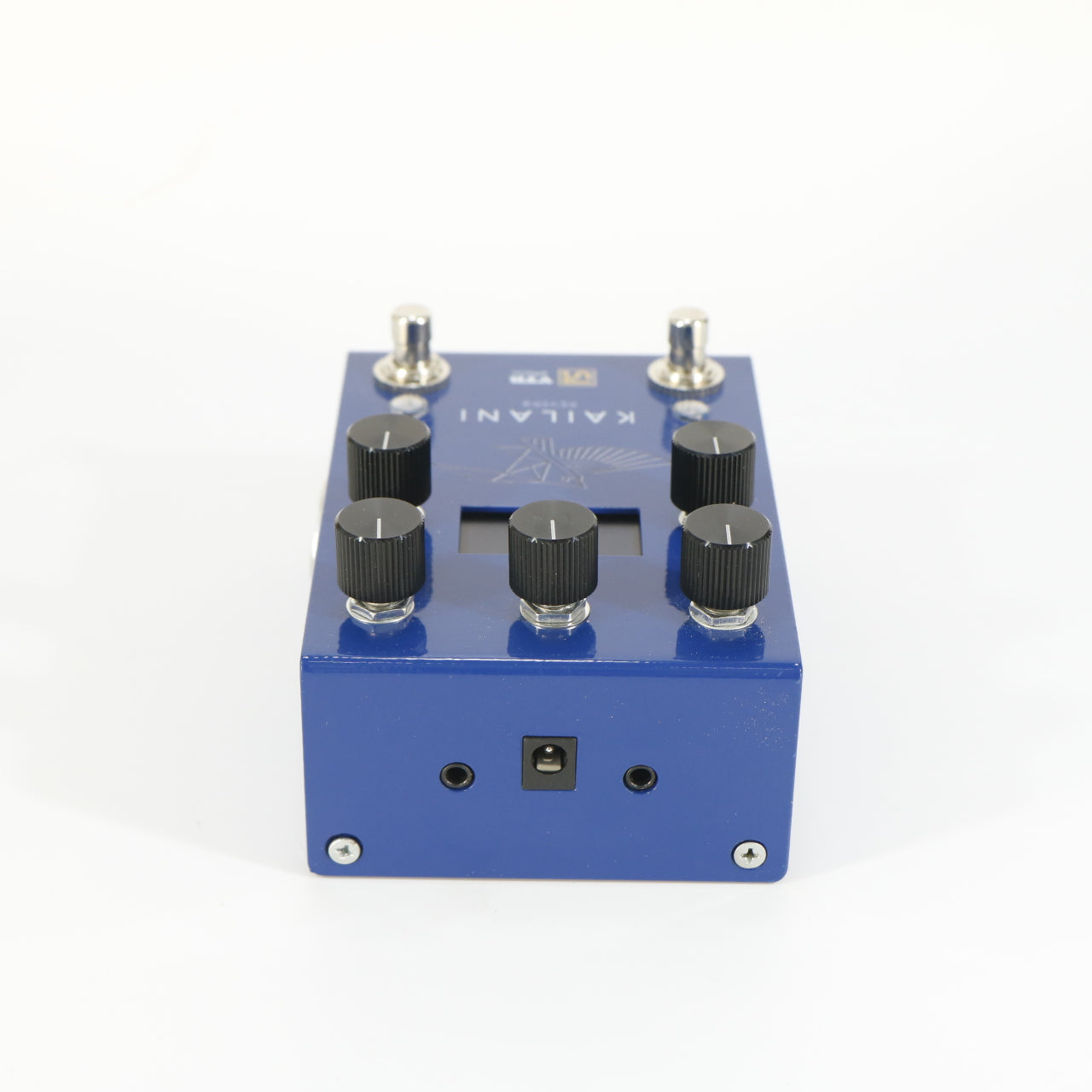 De VTR Effects Kailani Reverb is een zeldzaam Braziliaans boutique pedal dat zowel op het podium als in de studio uitzonderlijke reverb‑kwaliteit levert. Het bevat tien hoogwaardige algoritmes, zoals Spring, Hall, Plate, Room, Cathedral, Lo‑Fi, Shimmer, Dive, Ephemeral en Divided, die via een 1,3″ OLED‑display intuïtief te selecteren zijn. Je kunt tot 99 presets opslaan en live schakelen met een queue van tien posities. De Kill‑Dry‑functie biedt volledig natte stereosignalen, ideaal voor parallelle stereo‑opstellingen. MIDI In/Out en USB zorgen voor flexibiliteit en firmware‑upgrades. Het droge signaalpad blijft volledig analoog, terwijl het natsignaal wordt verwerkt via een krachtige 24‑bit ARM DSP. Werkt op 9 V DC (center-negtief) met een verbruik van circa 300 mA, weegt rond de 500 gram, en true bypass‑relais behouden de zuiverheid van het signaal.