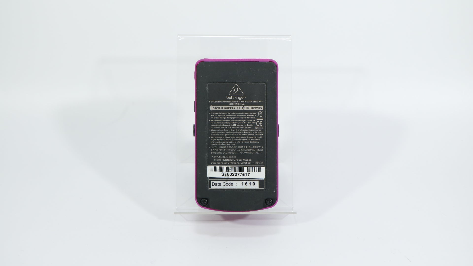 Part of the well-known Heavy Distortion line from Behringer, the HD300 focuses on delivering maximum gain and aggressive character in a straightforward and affordable format. It operates on a standard 9 V DC power supply, making it easy to integrate with most pedalboard power setups.