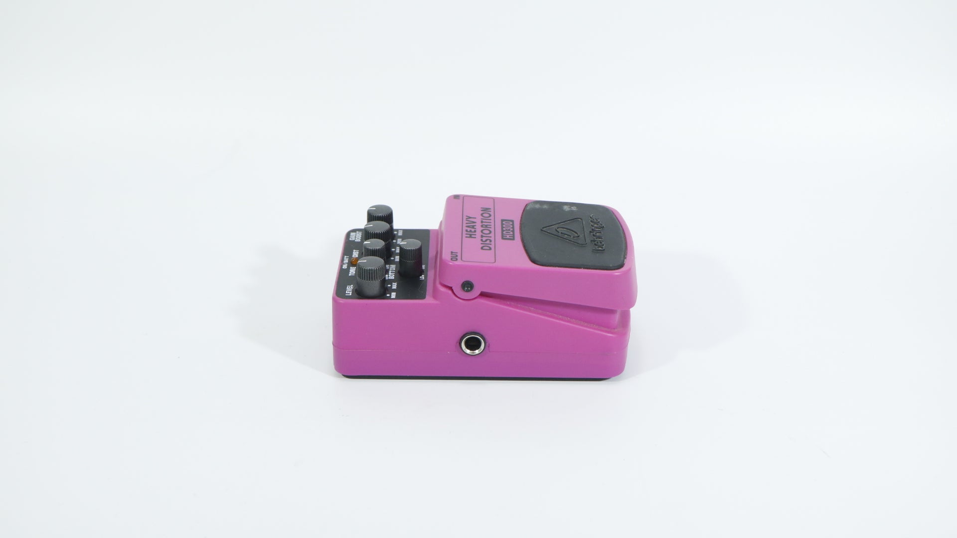 The control section features Level, Distortion, and Tone knobs, allowing precise control over output volume, gain intensity, and overall tonal balance. The Distortion control ranges from gritty crunch to saturated, high-gain heaviness, while the Tone control lets you dial in anything from dark and thick to sharp and cutting. This flexibility makes the HD300 effective both for rhythm playing with tight palm-muted riffs and for lead tones that need sustain and clarity.