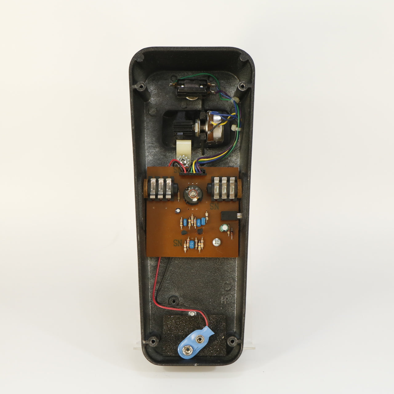 The Dunlop GCB-95 Original Cry Baby is one of the most iconic wah pedals ever created, shaping the sound of countless classic recordings since its introduction. This particular unit, with serial number AA-021446, is a vintage pre-CE model, placing it among the earlier productions before European certification markings were introduced. These older Cry Babys are highly sought after by collectors and tone enthusiasts for their raw, vocal-like sweep and distinct vintage character.
