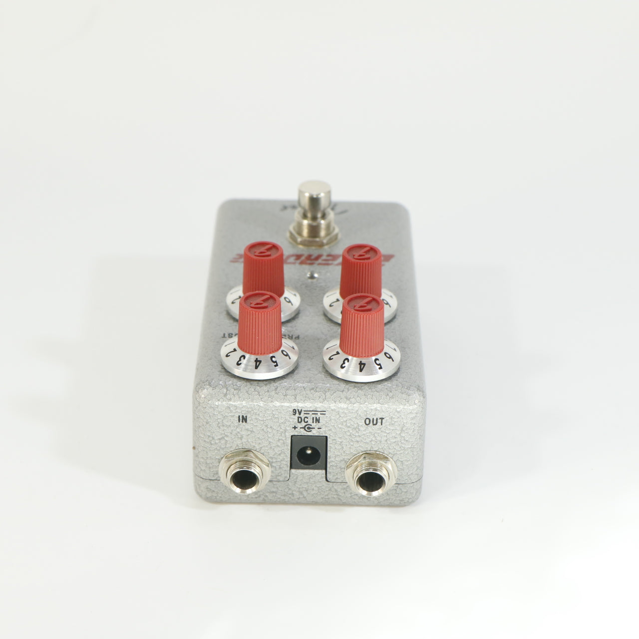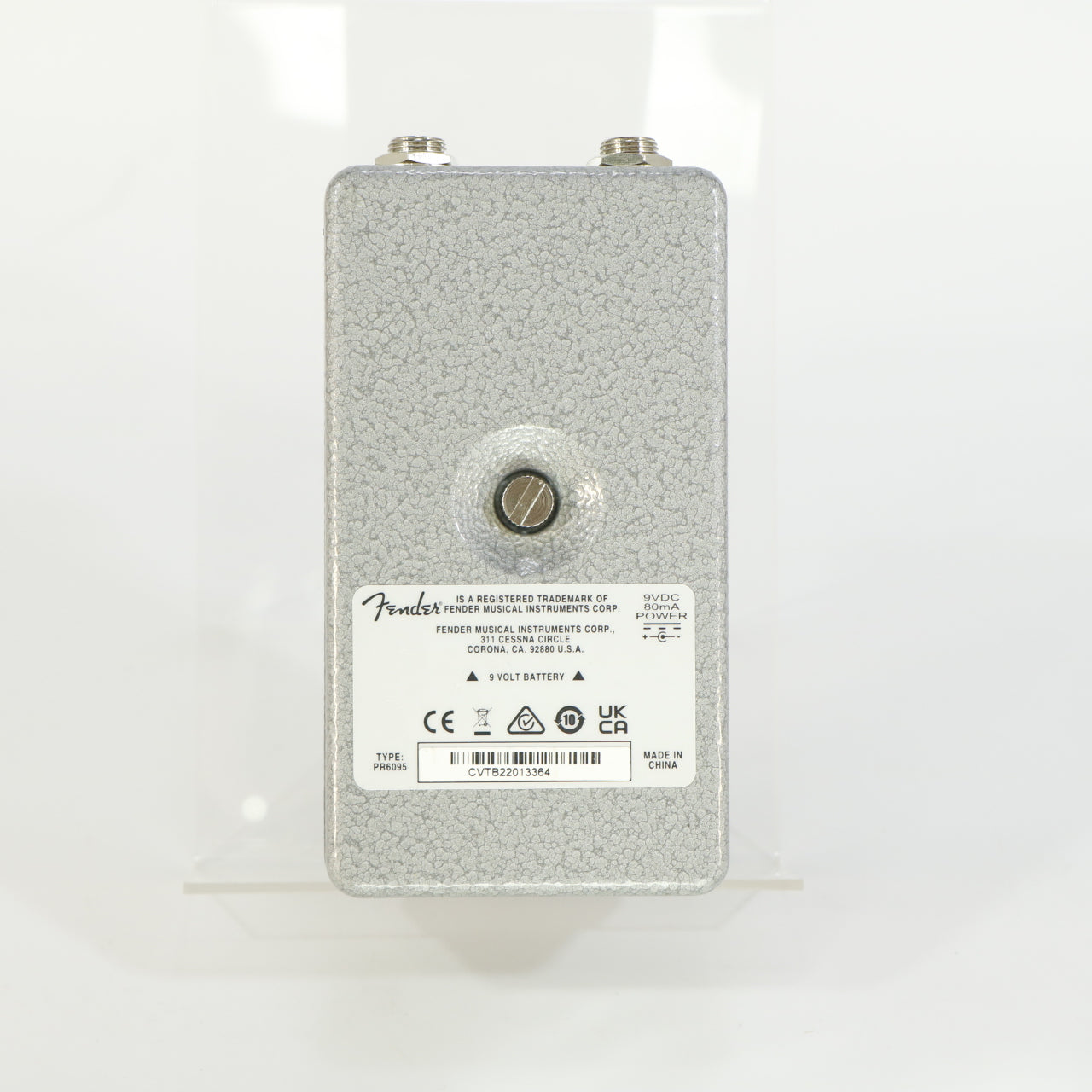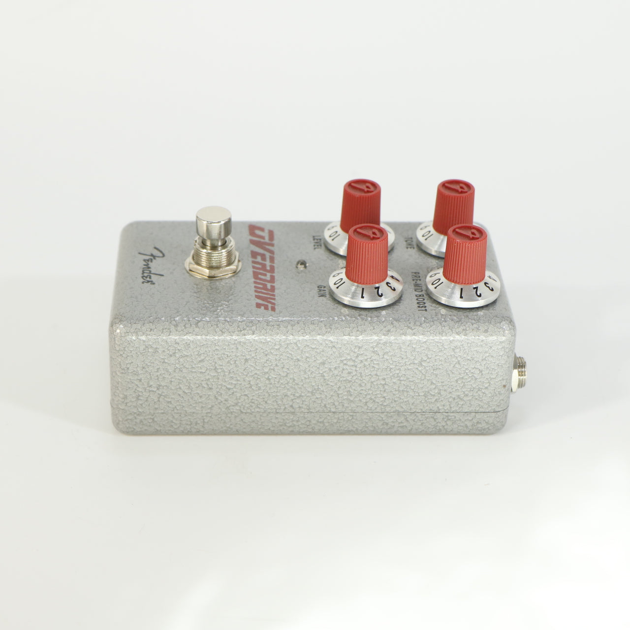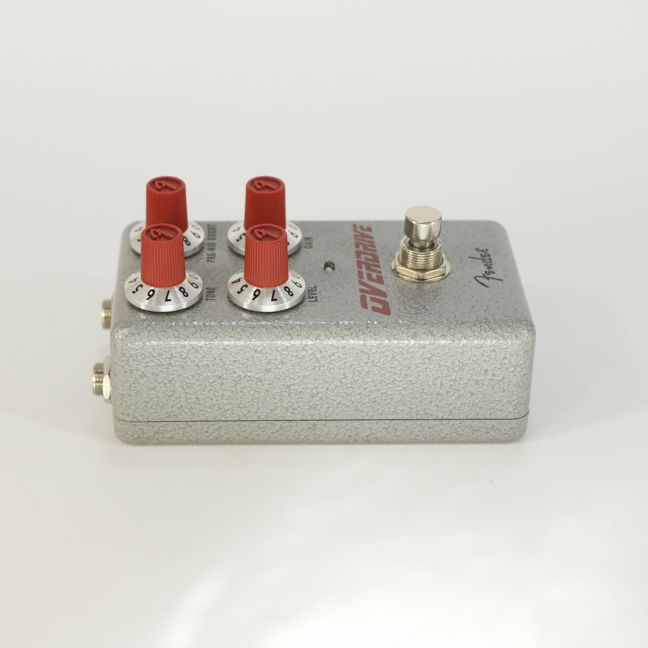 The Fender Hammertone Overdrive (Mint in Box) offers a perfectly preserved, like-new version of Fender’s compact overdrive. Its rugged aluminium “hammertone” enclosure combines lightweight durability with road‑worthy reliability. At its core is a unique Fender‑designed analog overdrive circuit, enriched by a pre‑gain mid boost that adds punch, bite and presence before the gain stage. Controls include Gain to shape the amount of drive, Level for output volume, Tone to adjust treble frequencies, and Boost (pre‑mid) to inject midrange emphasis. Inside there is also an internal trim potentiometer accessible via the rear panel that lets you further dial out excessive high frequencies for taming bright pickups and amps. The Top‑mounted input/output jacks and true‑bypass switching ensure seamless board integration without unwanted tone coloration. The pedal runs on a 9‑volt battery or a center‑negative 9V adapter (not included). Fender launched the Hammertone range to offer high‑quality tone at an affordable price, celebrating classic styling with modern design touches. Users appreciate its ability to push amps into musical saturation while retaining clarity. Its sound character fits players who want vintage‑inspired drive with modern reliability.