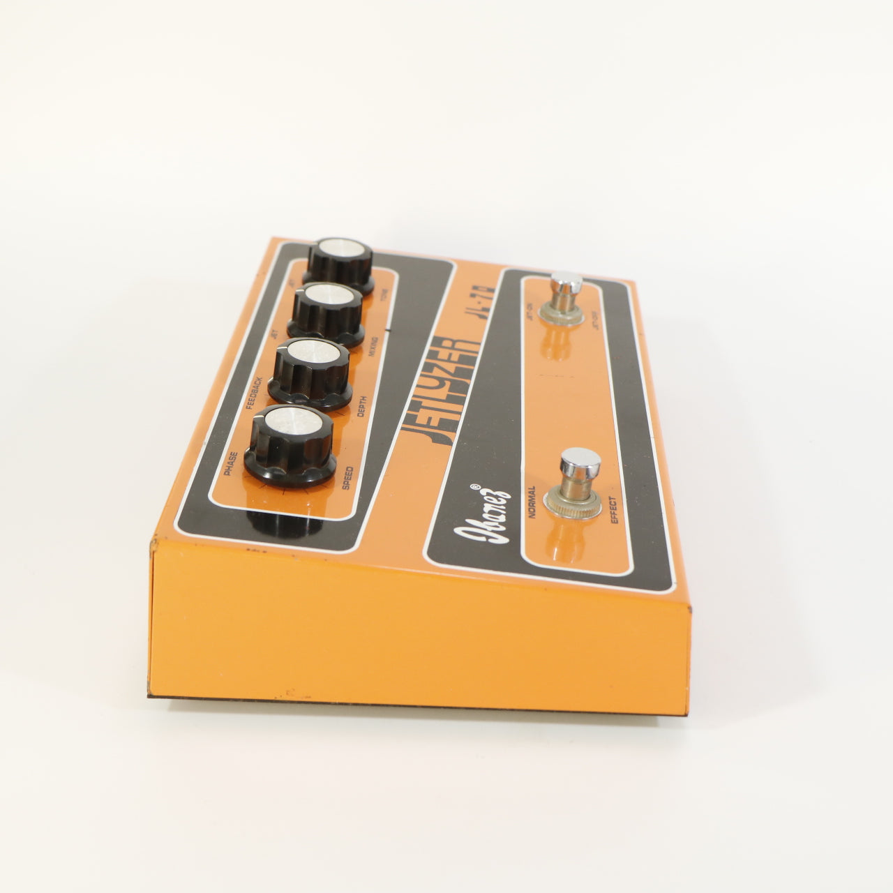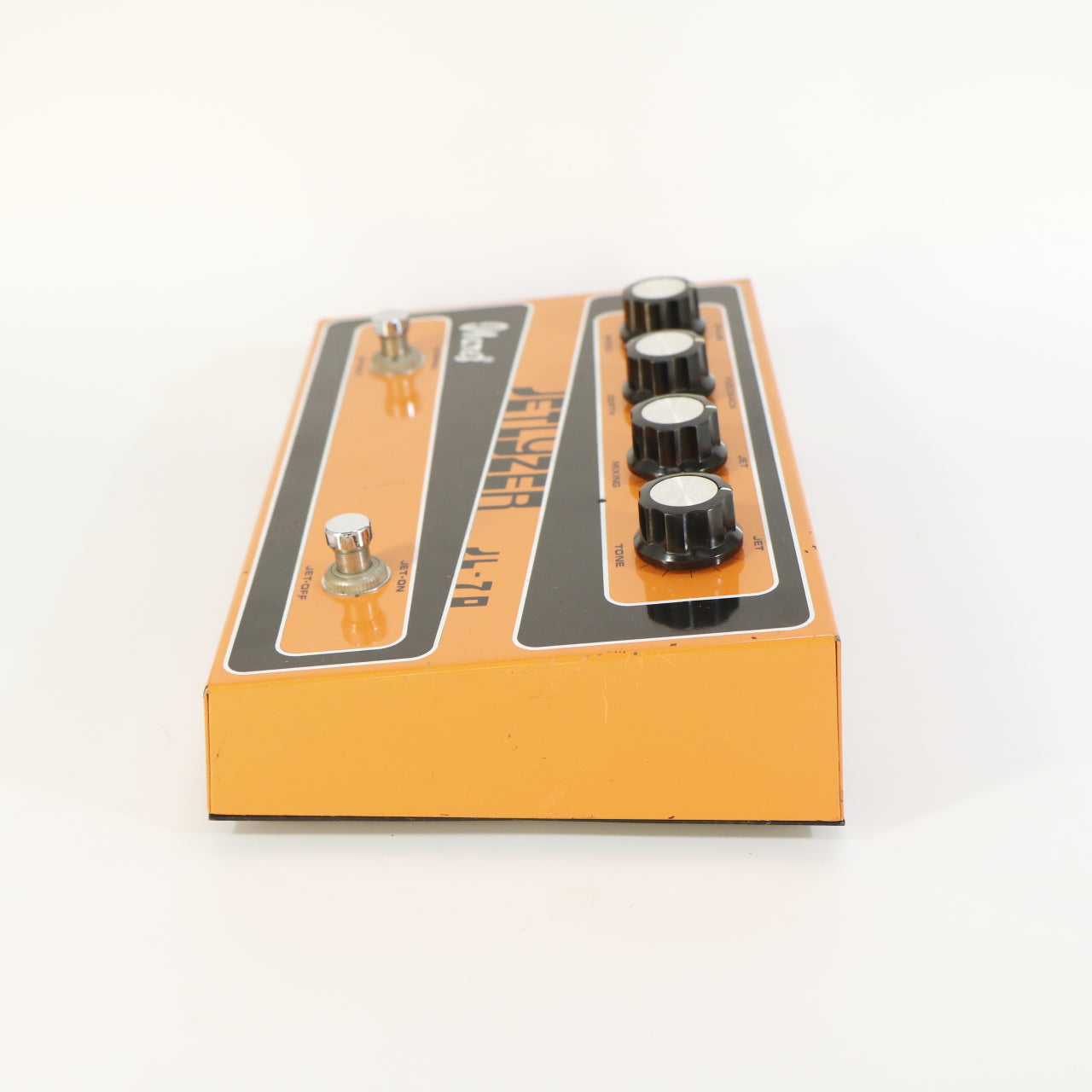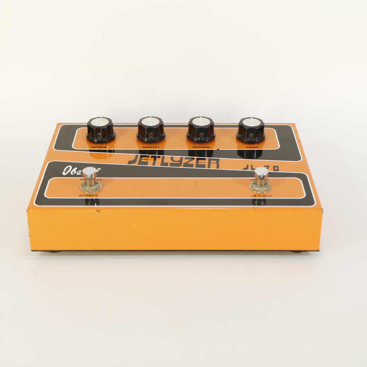 The Ibanez JL-70 Jetlyzer is a rare and innovative vintage modulation pedal from the late 1970s, built in Japan during the golden era of Ibanez effects. Unlike a standard flanger, the Jetlyzer combines sweeping phase and flanger-style movement with a distinctive jet-engine effect and a filter section, producing dramatic and psychedelic modulation textures. Its unique sonic character and bold design have made it one of the most collectible and unusual Ibanez pedals of its time.