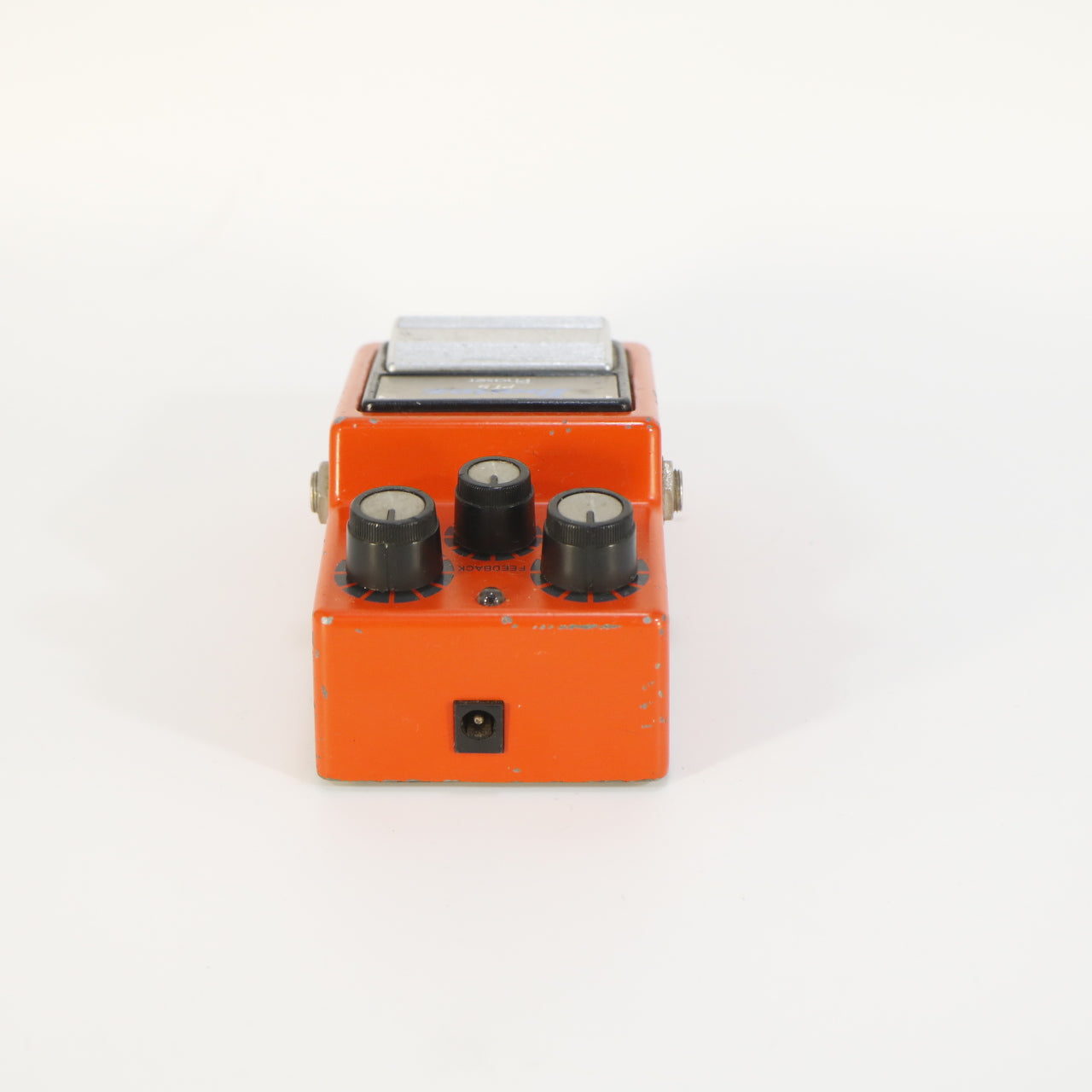 The Ibanez PT9 Phaser (s/n 257398, Black Label, Made in Japan) is a sought-after vintage modulation pedal from the early 1980s, celebrated for its warm, musical phasing and straightforward usability. Built in Japan during Ibanez’s golden era of effects manufacturing, it delivers a lush analogue sweep that remains smooth and expressive across a wide range of settings. Its Black Label construction is typical of the desirable first-run units, known for their durability and consistent performance.