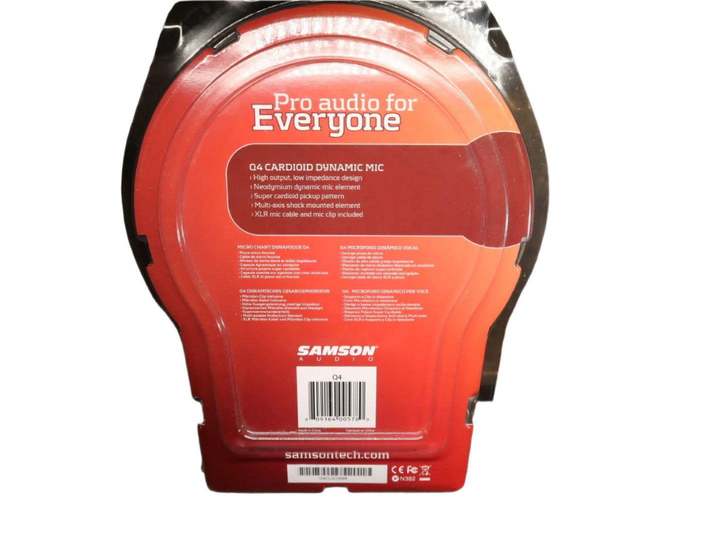The Samson Audio Concertline Q4 Microphone, complete with an XLR cable, is a dynamic microphone designed to deliver high-quality audio performance for both live and studio applications. Ideal for vocals, presentations, and instrument miking, the Q4 ensures clarity and precision in sound reproduction.