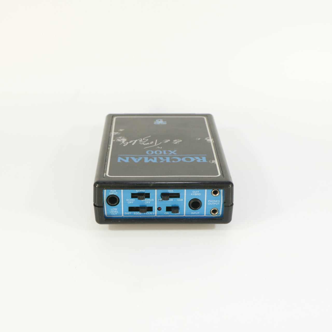 The Scholz Research and Development Rockman X100 is a legendary headphone amplifier from the 1980s, designed by Tom Scholz of Boston. Widely regarded as one of the most iconic portable practice and recording tools of its time, the X100 delivers the signature Rockman tone — a polished, saturated sound with built-in chorus and delay that defined countless classic rock recordings of the era.